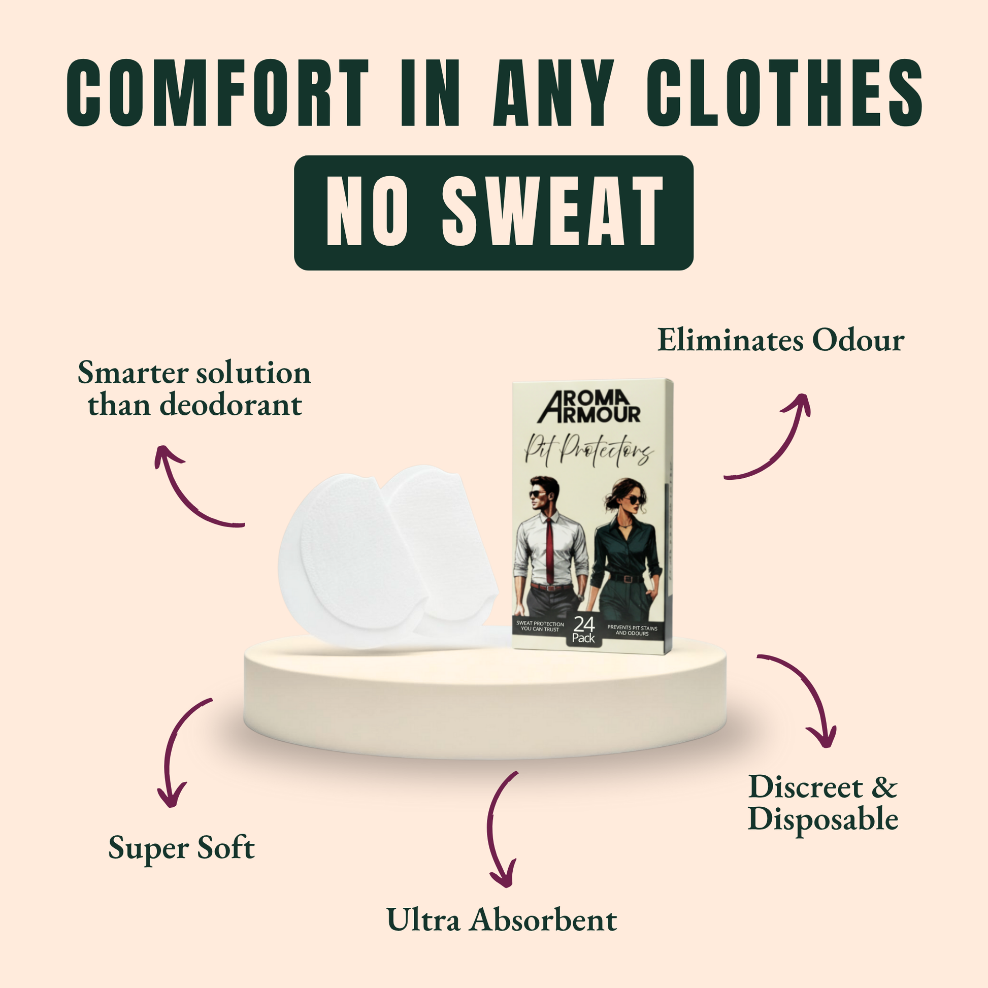 Pit Protectors are hypoallergenic, fragrance free, and ultra absorbent - effectively preventing sweat stains and odours all day long.